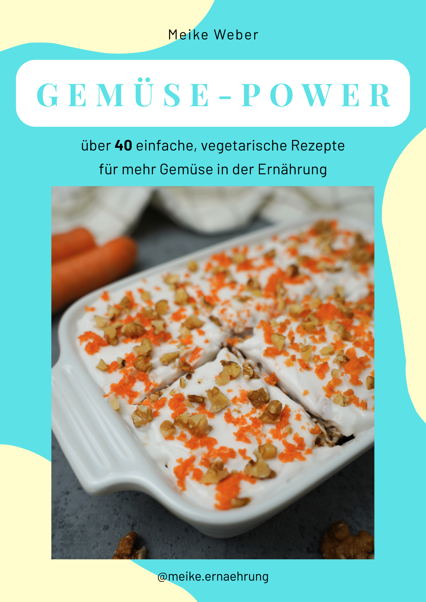 Empfohlen werden min. 400 g Gemüse pro Tag. Das kann schon eine ziemliche Herausforderung sein und genau dafür habe ich dieses Rezepte-E-book mit über 40 Gemüse-Rezepten entwickelt. Viele von ihnen mit verstecktem Gemüse, sodass du gar nicht merkst, dass du gerade Gemüse isst und die Menge in deiner Ernährung ganz einfach erhöhen kannst.